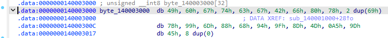 byte_140003000이 선택된 상태에서 Shift + E 단축키를 누르면 해당 데이터를 해석 가능하기 간편한 형태로 익스포트 가능