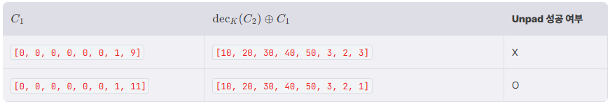 $D_K(C_1)$의 마지막 바이트 = 0x01 $\oplus$ $C_1$의 마지막 바이트