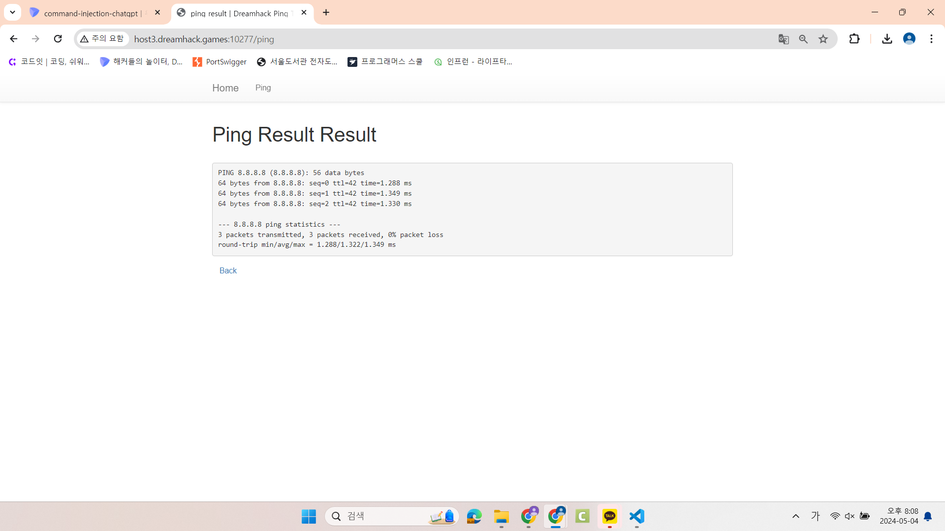 특정 Host에 ping 패킷을 보내는 서비스입니다. Command Injection을 통해 플래그를 획득하세요. 플래그는 flag.py에 있습니다. chatGPT와 함께 풀어보세요! Reference Webhacking Roadmap