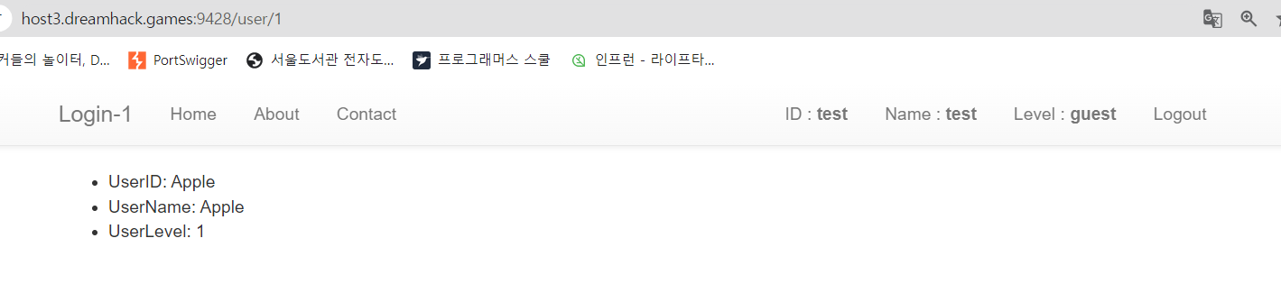 UserLevel이 1이면 admin 레벨, 0이면 guest 레벨임을 알 수 있다.