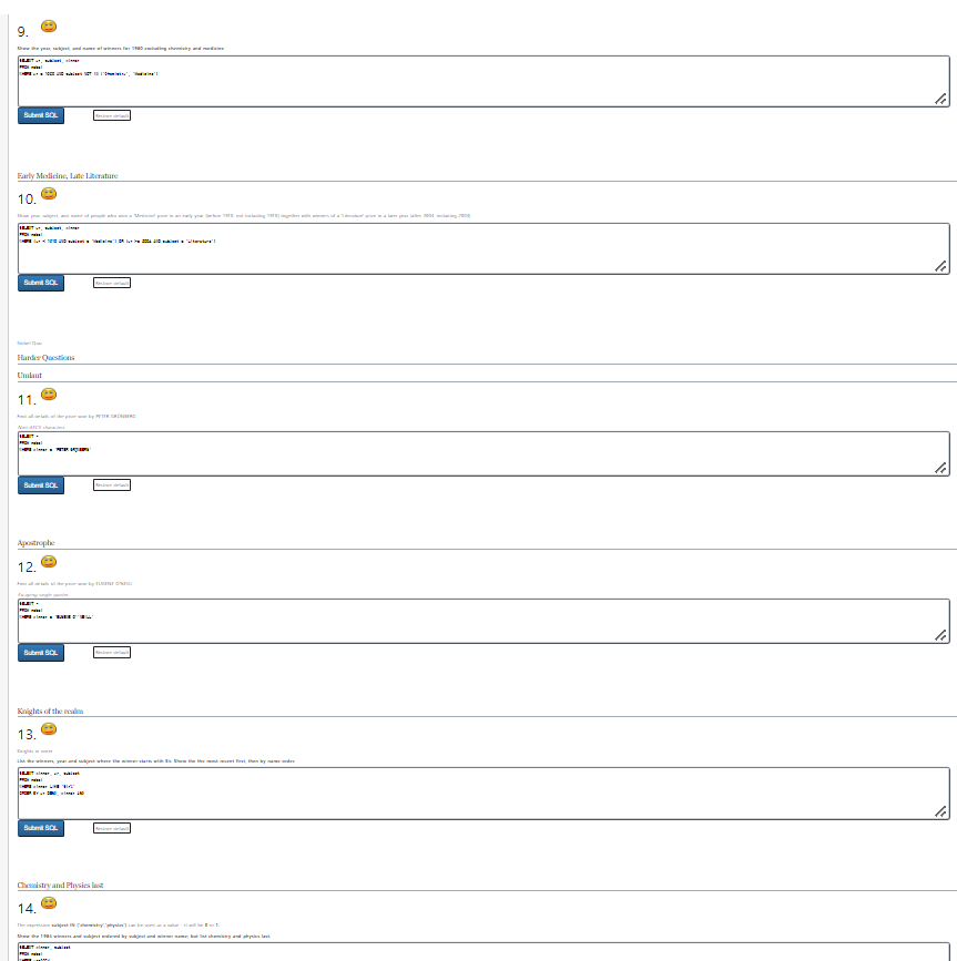 4. https://sqlzoo.net/wiki/SELECT_from_Nobel_Tutorial