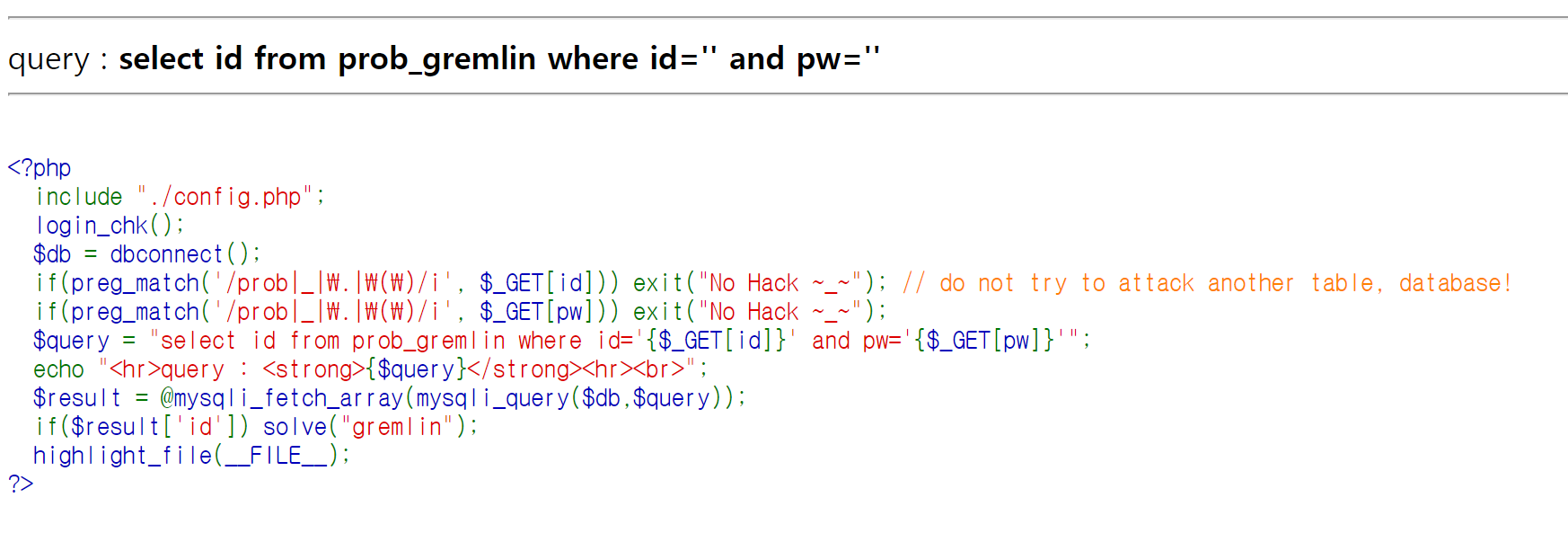1. Lord of SQLinjection - gremlin