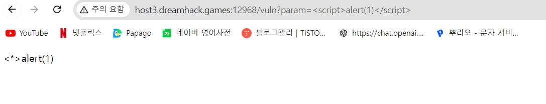 <script>구문을 필터링을 하고 있으므로 <script>구문이 아닌 다른 구문을 통해서 파라미터에 값을 넣어주면 될 것 같다.