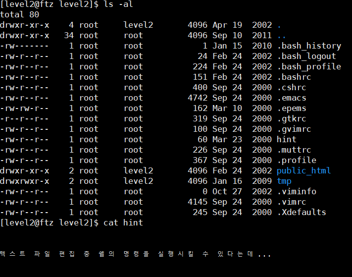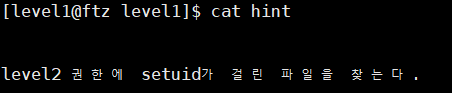 level 2 권한에 setuid가 걸린 파일을 찾으라고 한다.