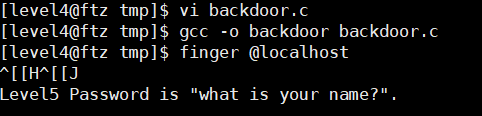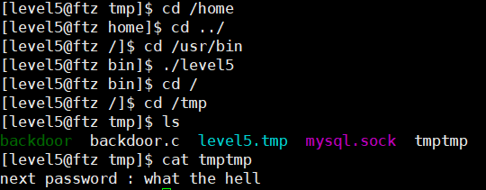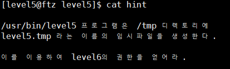 level5을 실행시키면 /tmp에 임시저장 파일을 만들었다가 삭제하므로 볼 수가 없다.