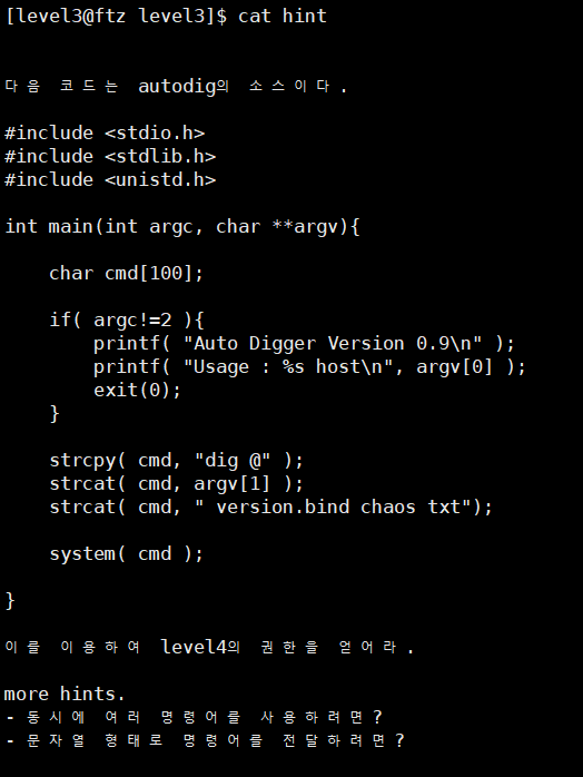 실행파일의 경로는 level4/temp에 있는 backdoor 파일