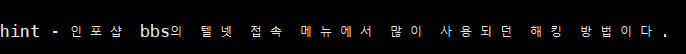 ctrl + c가 bbs의 텔넷 접속 메뉴에서 많이 사용되던 해킹 방법이라고 한다.
