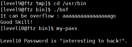 buf2가 "go"이면 level10의 권한을 주는 것이다.
